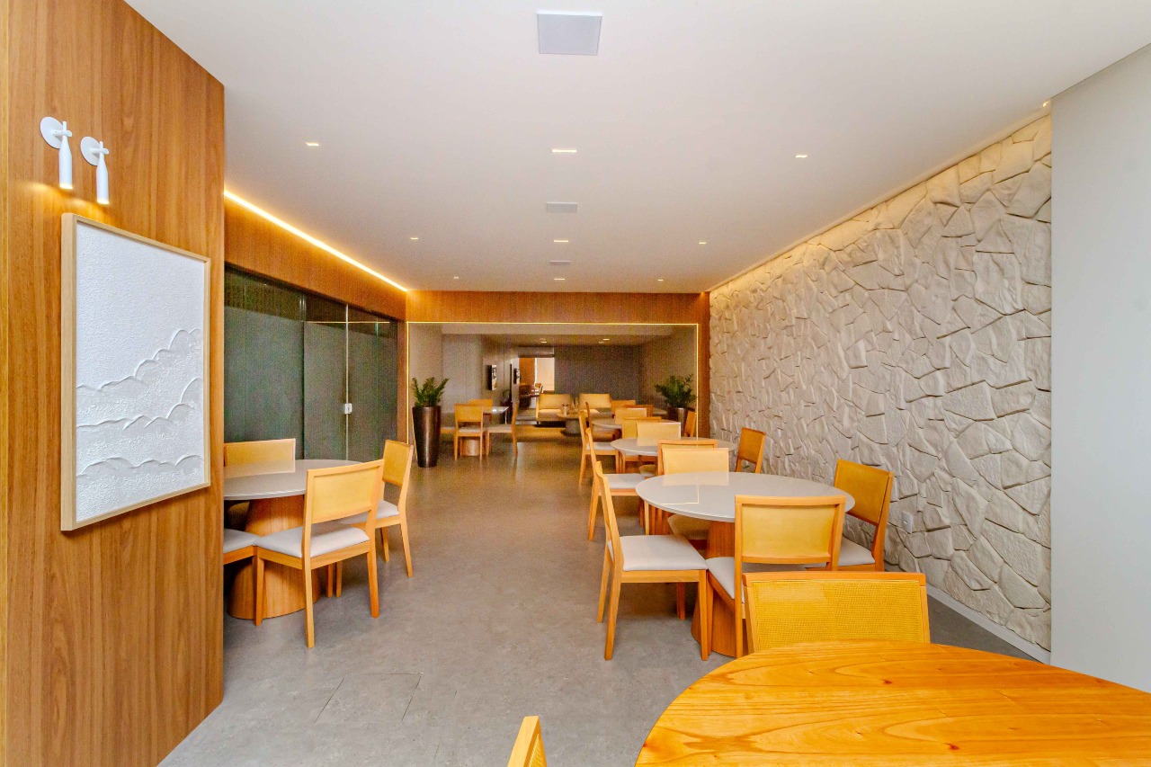 O salão de festas é o principal espaço de lazer do empreendimento, ideal para confraternizações, comemorações e momentos especiais com amigos e familiares. Um ambiente agradável e versátil, perfeito para reunir pessoas com conforto e privacidade, agregando ainda mais valor à experiência de morar no Arthur Fischer.