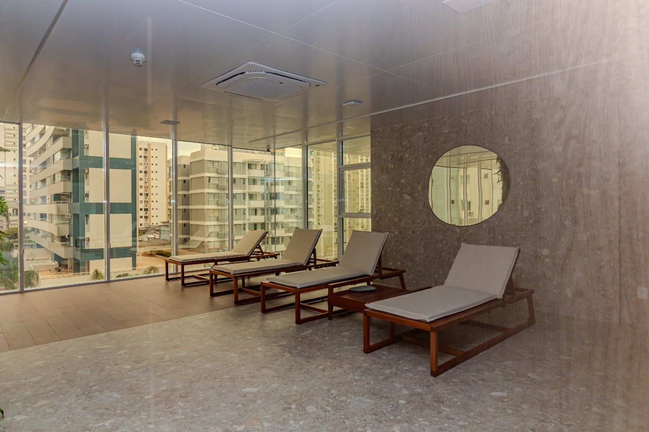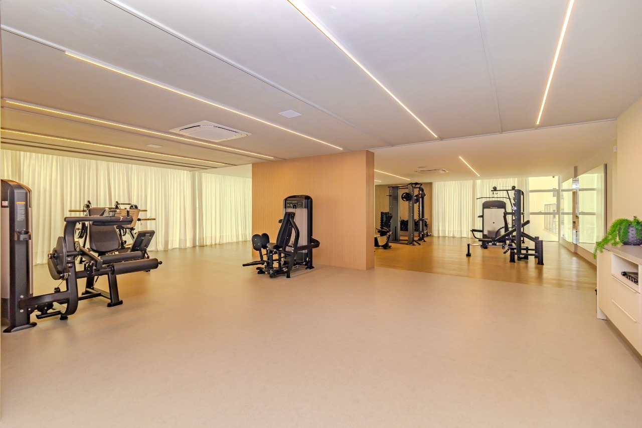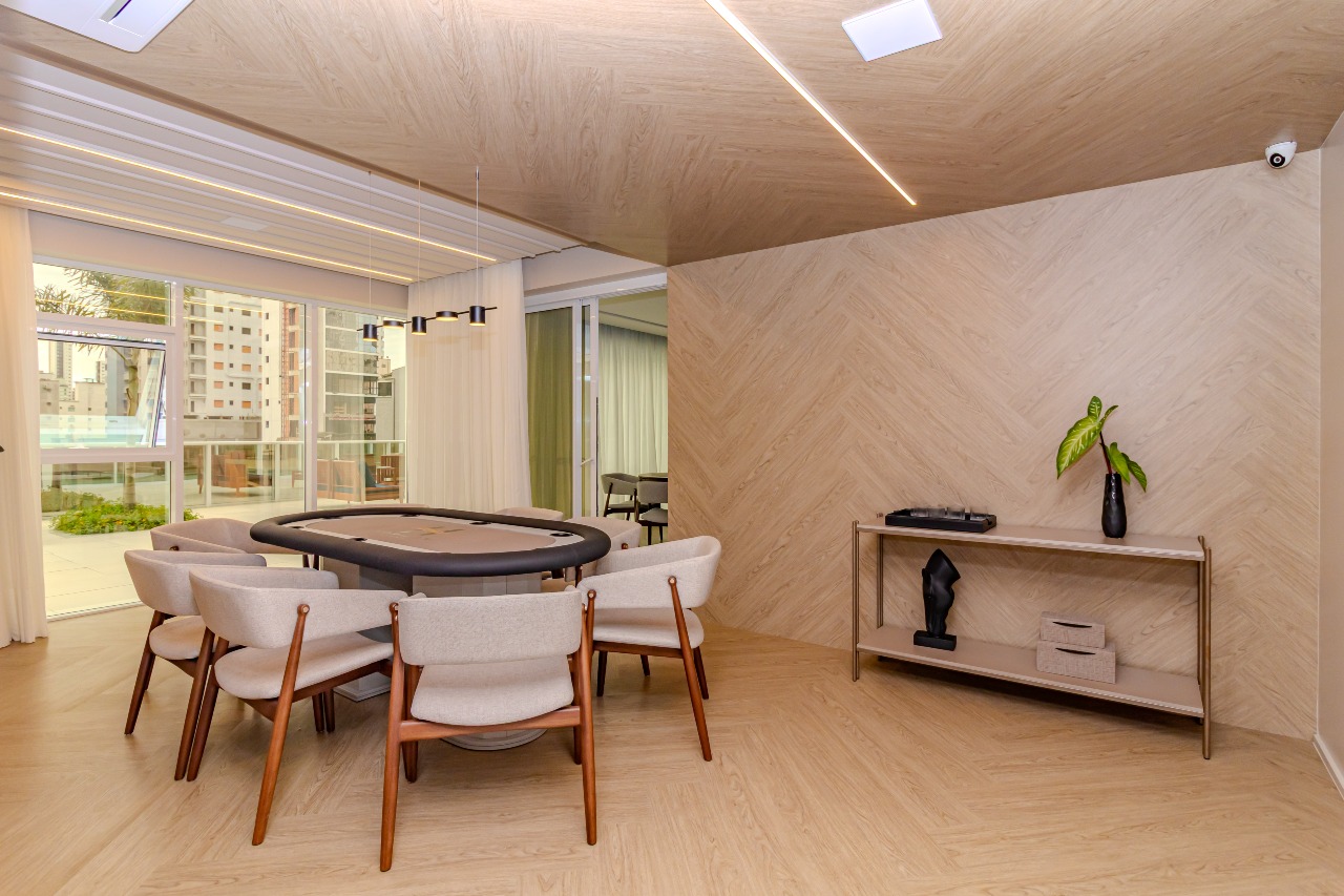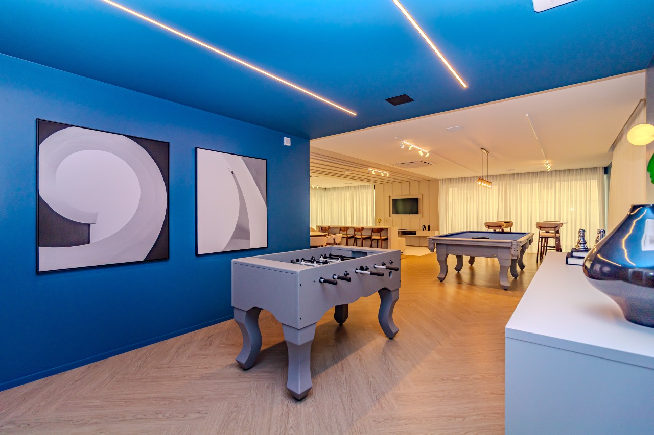 Com um generoso espaço privativo de 140 metros quadrados, o imóvel foi desenvolvido para acomodar famílias maiores, oferecendo duas suítes master e duas demi-suítes, além de um lavabo para os convidados.