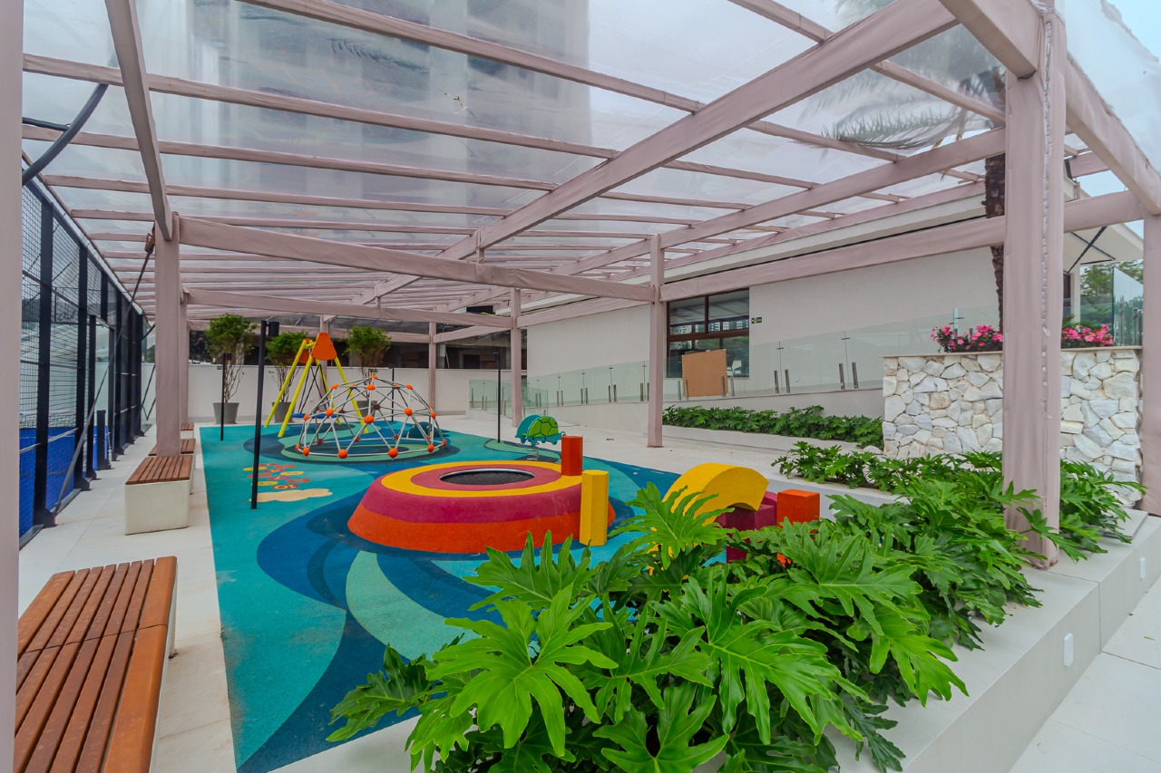 O Torres da Brava também conta com uma ampla área de lazer, com piscina de borda infinita e raia de 25 metros, pub, boate, playground, sala de jogos, espaço kids, espaço fitness, quadra de padel e 5 salões de festa.