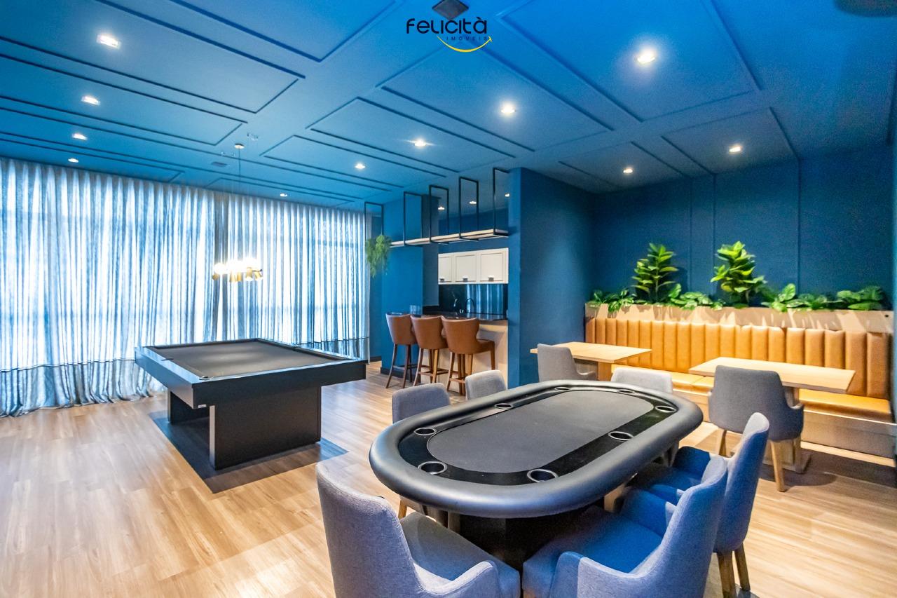 A área de lazer é completa decorada e equipada com piscina adulto com borda molhada, piscina infantil, pub com jogos, spa, sala de massagem, mini quadra poliesportiva, playground, brinquedoteca, academia, salão de festas e espaço gourmet.