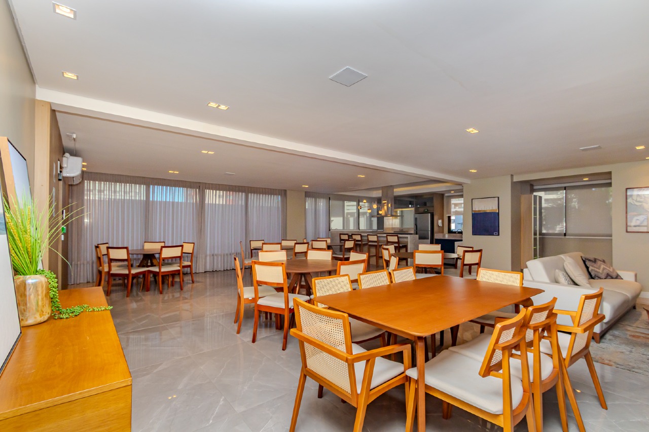 Com 101m² de área privativa, localizado em quadra mar e com uma leve vista para o mar. O imóvel conta com amplo living, totalmente mobiliado, sacada integrada com churrasqueira, ideal para receber amigos e aproveitar bons momentos. A planta é bem distribuída, oferecendo conforto e funcionalidade em todos os ambientes.