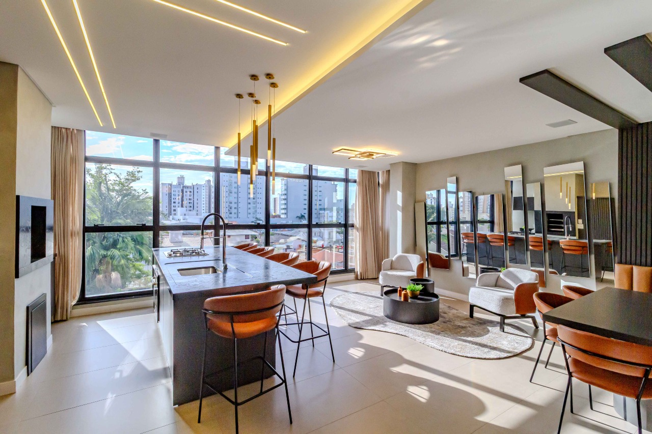 As áreas comuns são mobiliadas, decoradas e equipadas, com hall de entrada com pé-direito duplo, dois elevadores, sistema de vídeo porteiro, fechaduras eletrônicas, monitoramento eletrônico, iluminação em LED, coleta seletiva e infraestrutura para carregamento de carro elétrico, perfeito para quem valoriza conforto, segurança e praticidade no Centro de Itajaí.