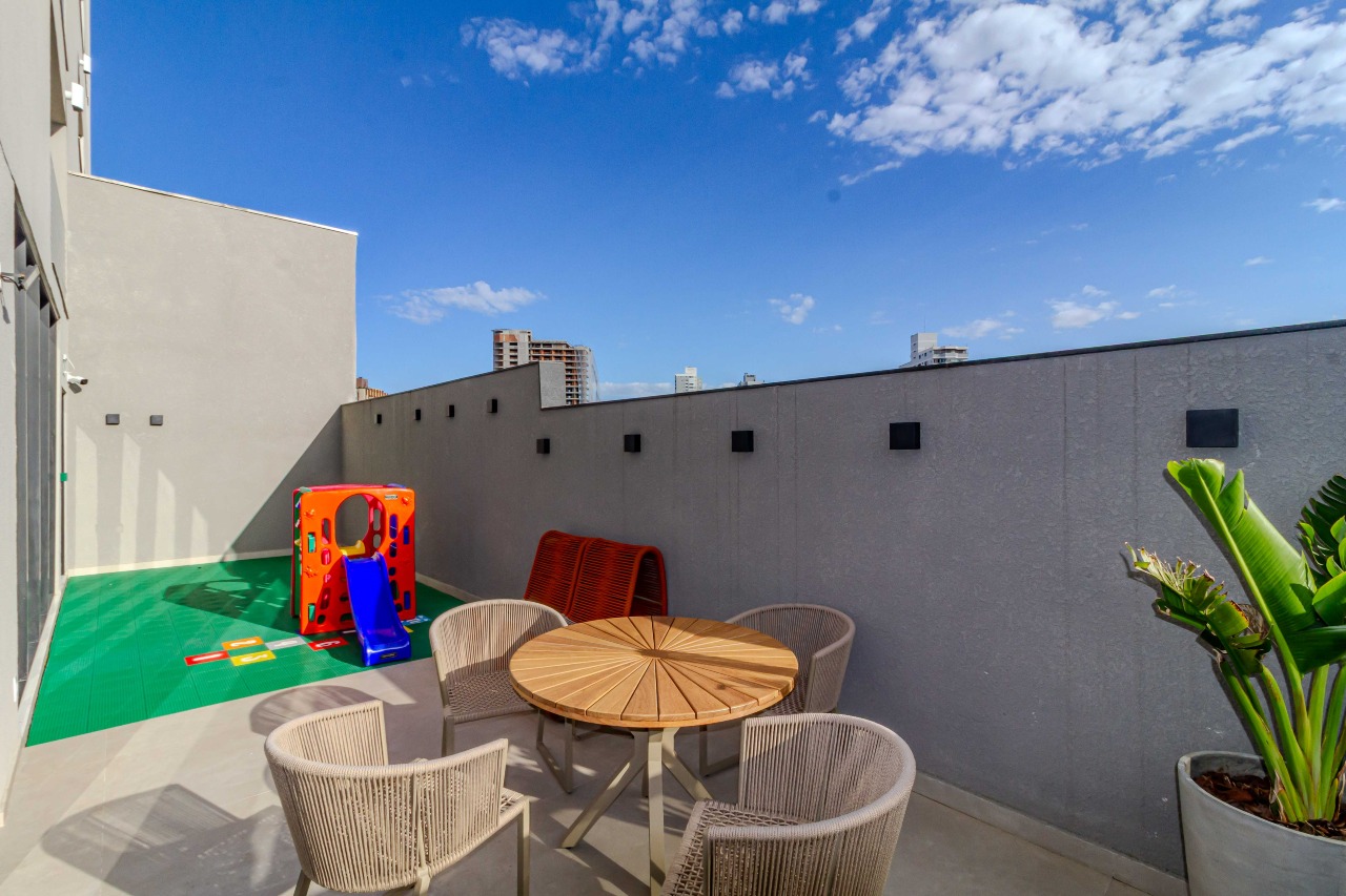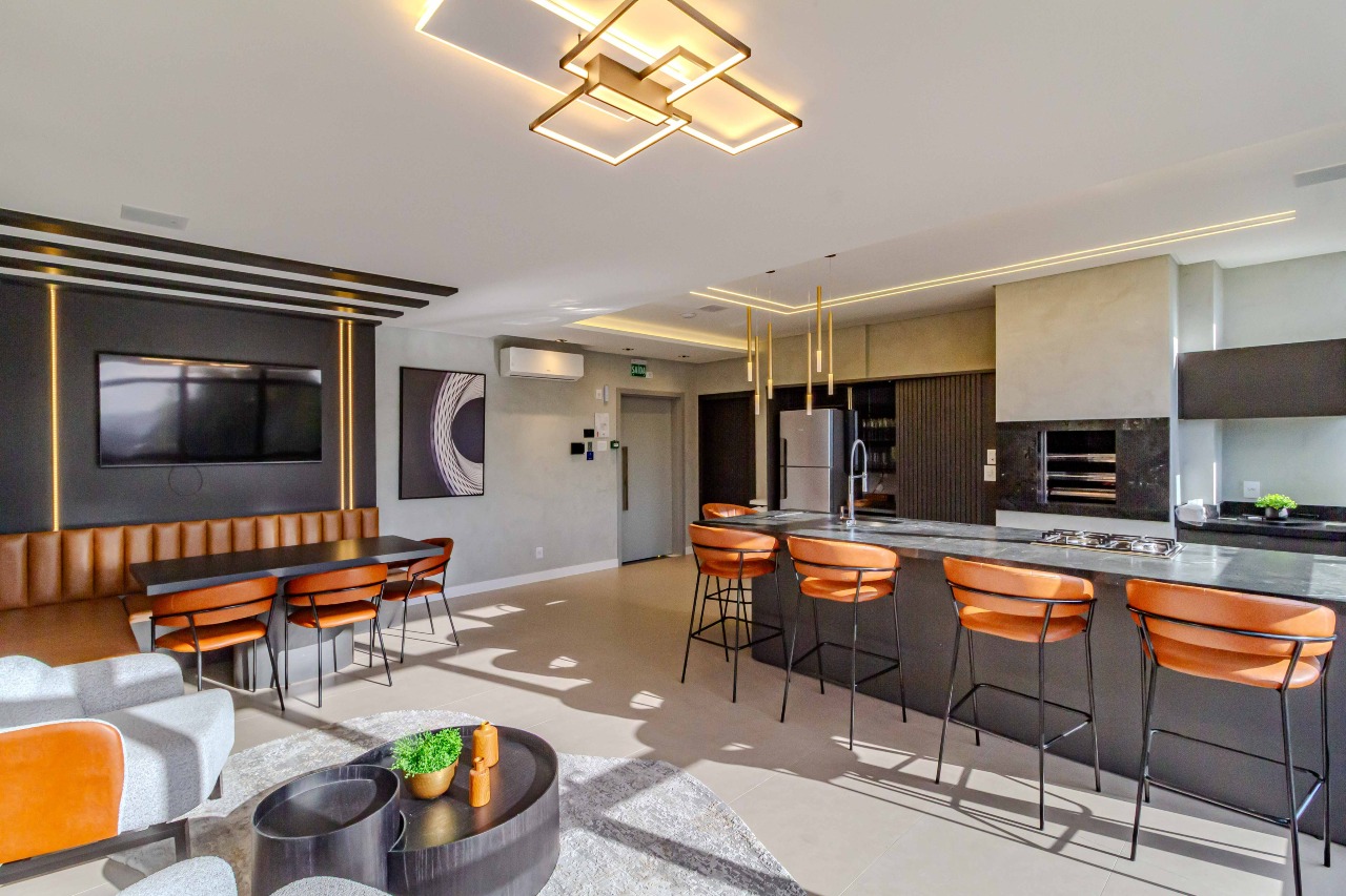 O empreendimento conta com uma completa infraestrutura de lazer e segurança, incluindo academia equipada, brinquedoteca, espaço kids, salão de festas, espaço gourmet e lounge gourmet, além de piscinas adulta com borda infinita, infantil aquecida e piscina térmica.