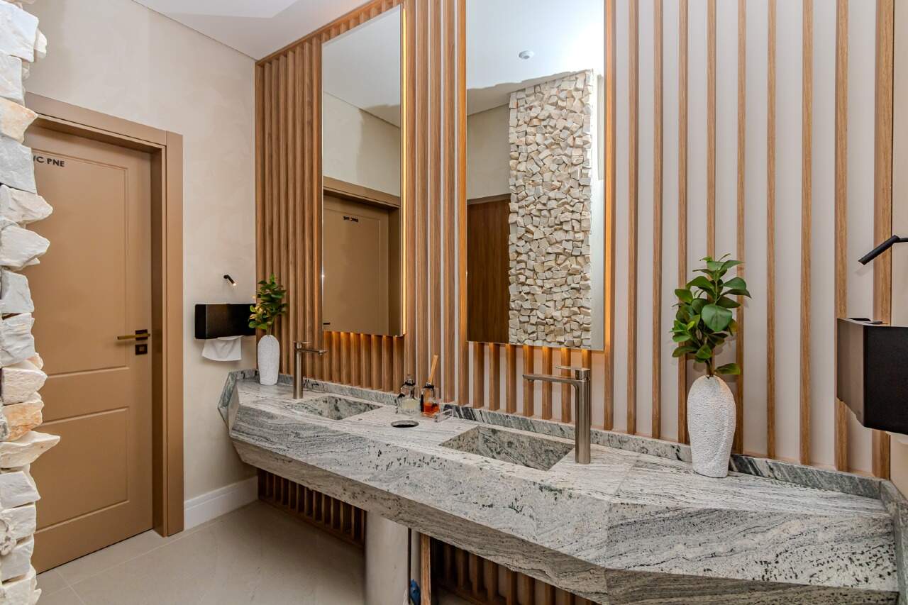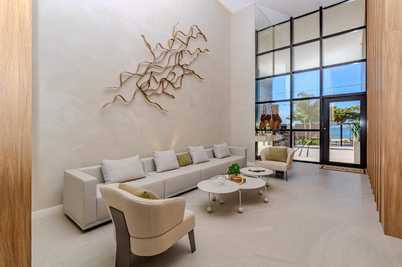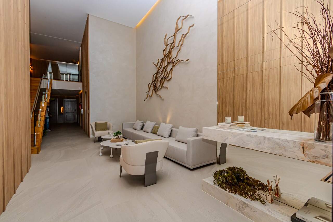 Arquitetura moderna e elegante, com áreas comuns refinadas