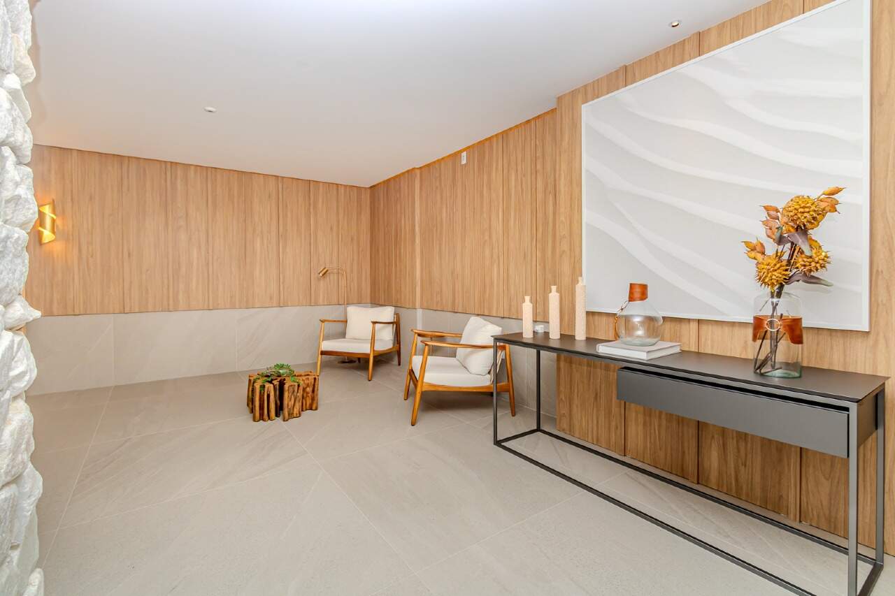 Com 119m² de área privativa, este apartamento oferece um amplo living que integra conforto e funcionalidade, perfeito para receber amigos e aproveitar momentos em família. A sacada aberta com churrasqueira proporciona um espaço agradável para confraternizações, além de garantir ótima ventilação e iluminação natural aos ambientes.