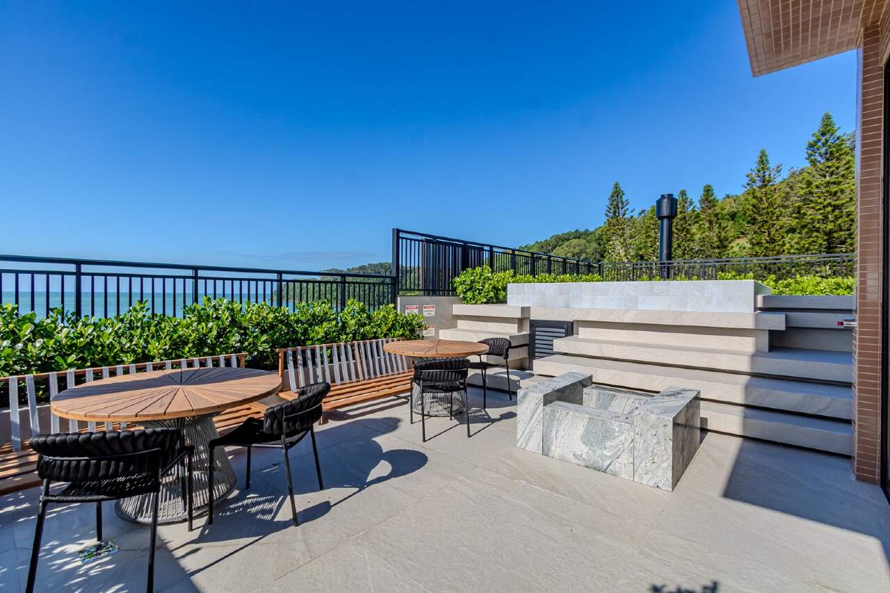 O La Plage oferece uma área de lazer completa no rooftop, com vista panorâmica para o mar, criando um cenário perfeito para relaxar e aproveitar o melhor da vida.
