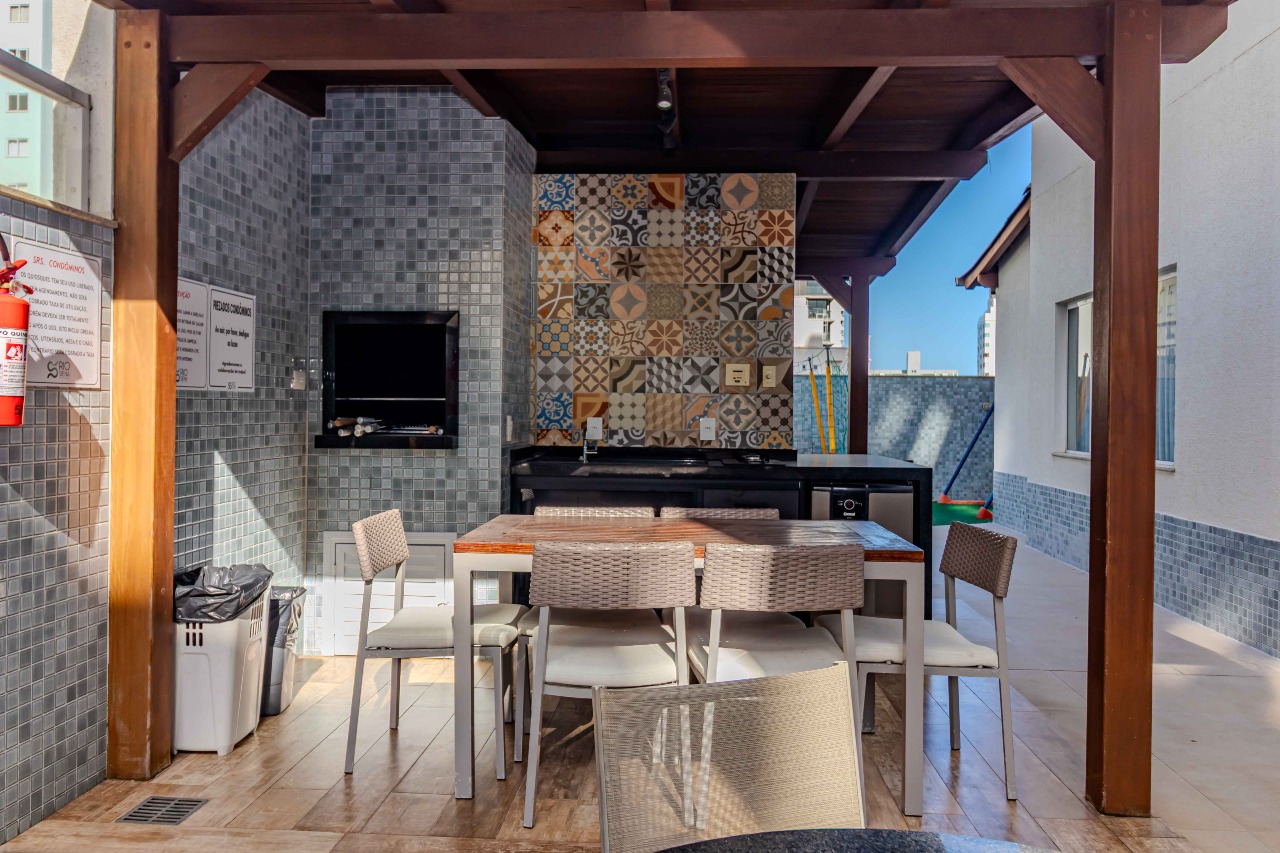 A planta conta com living integrado, com sala de estar e excelente iluminação natural, além de churrasqueira, ideal para momentos de lazer e convivência. O imóvel possui ainda cozinha, área de serviço e infraestrutura completa, com infraestrutura para água quente, aquecimento a gás, espera para ar-condicionado split, hidrômetro e gás individuais, interfone e fechadura com senha na porta de entrada.
