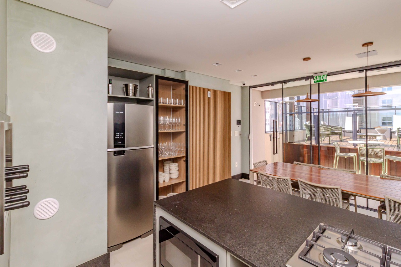Com 115m² de área privativa, a planta distribui bem os ambientes. A cozinha se conecta de forma funcional ao restante do apartamento, e cada cômodo foi pensado para aproveitar ao máximo cada metro quadrado. O 7º andar garante uma boa vista e ventilação natural, além de distância do movimento da rua.